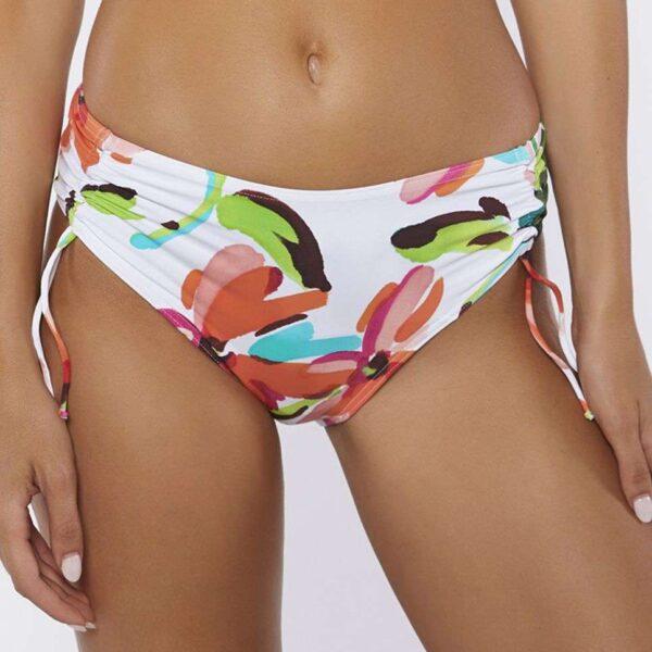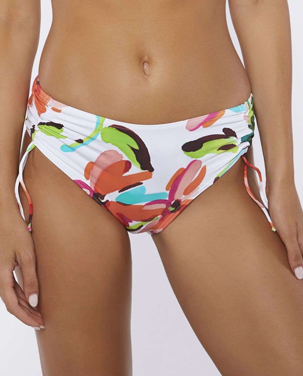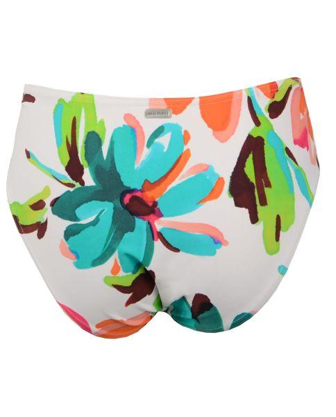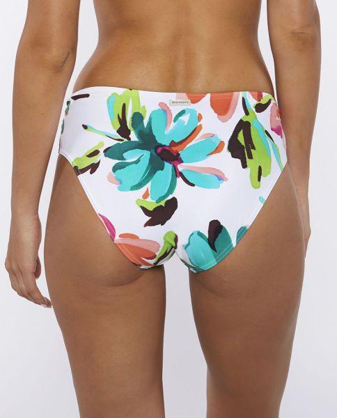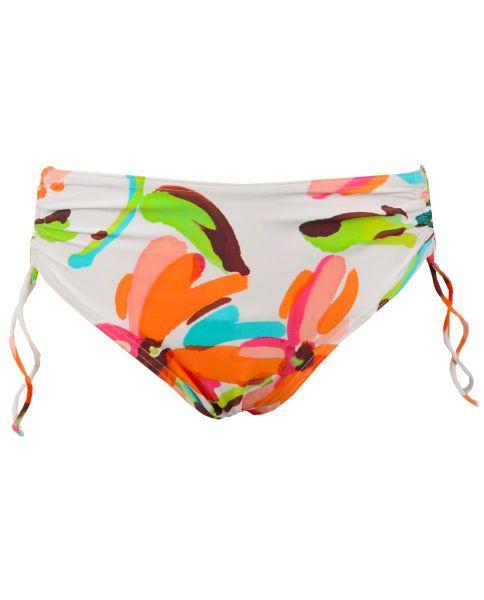 Braga de bikini de mujer Samar con estampado muy colorista de grandes flores en fondo blanco.